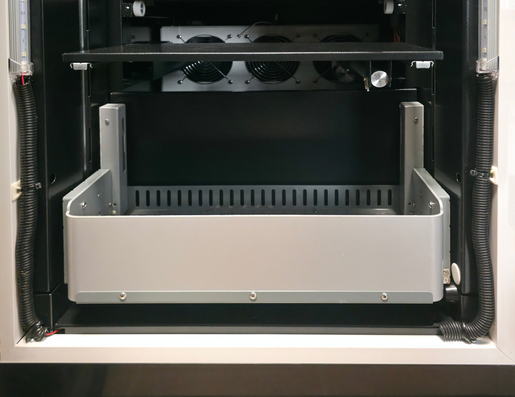 The machine features a cooling system to keep beverages and snacks fresh, a spiral dispensing system for smooth delivery, and an integrated elevator to protect products during vending. A drop sensor ensures every purchase is successfully delivered, minimizing product loss.
